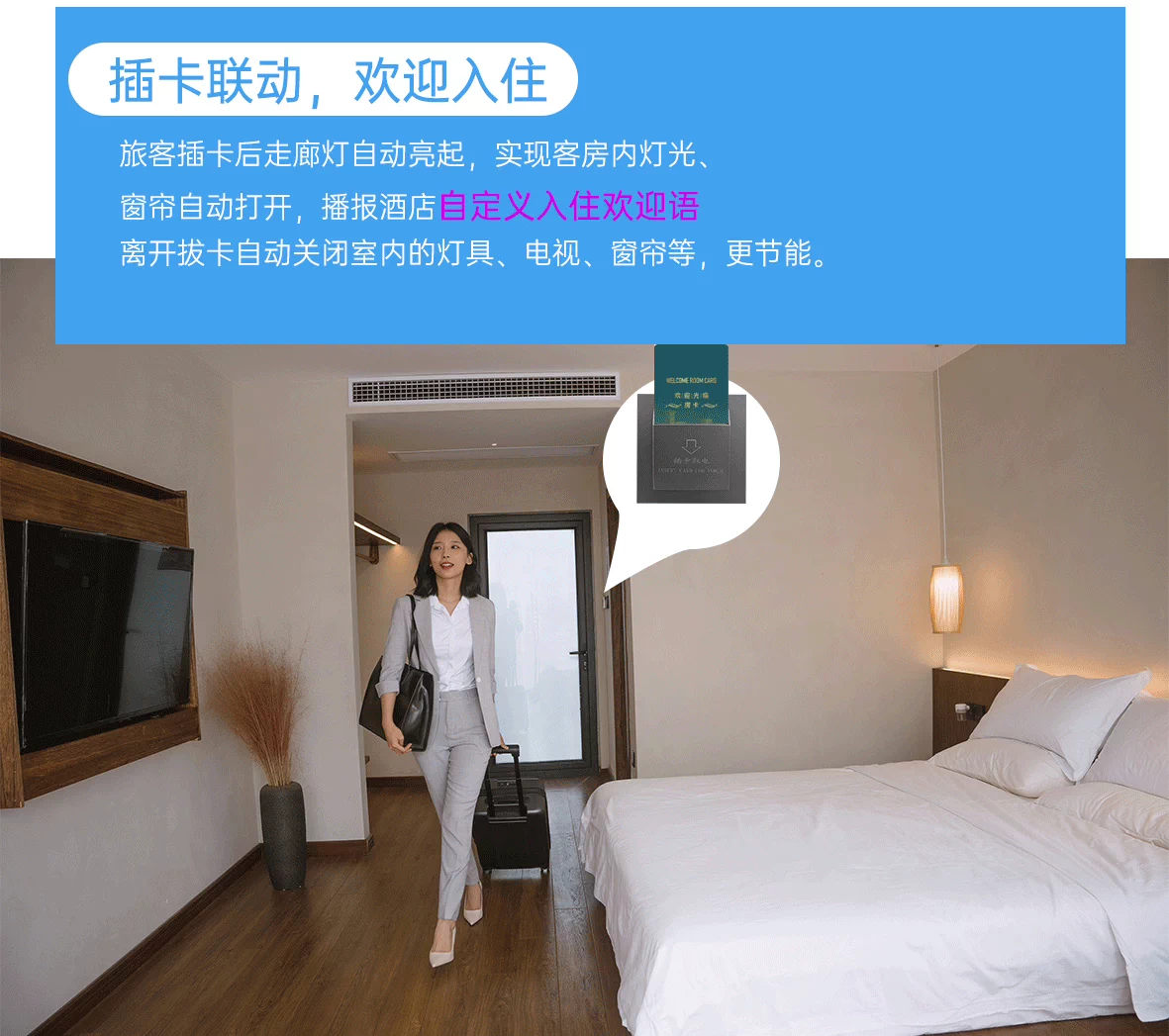 4、自定義場(chǎng)景系統(tǒng)功能:明亮模式、睡眠模式、浪漫模式、閱讀模式、晨起模式、夜起模式等,根據(jù)不同地域、不同的生活習(xí)慣、不同的酒店管理模式自定義配置。